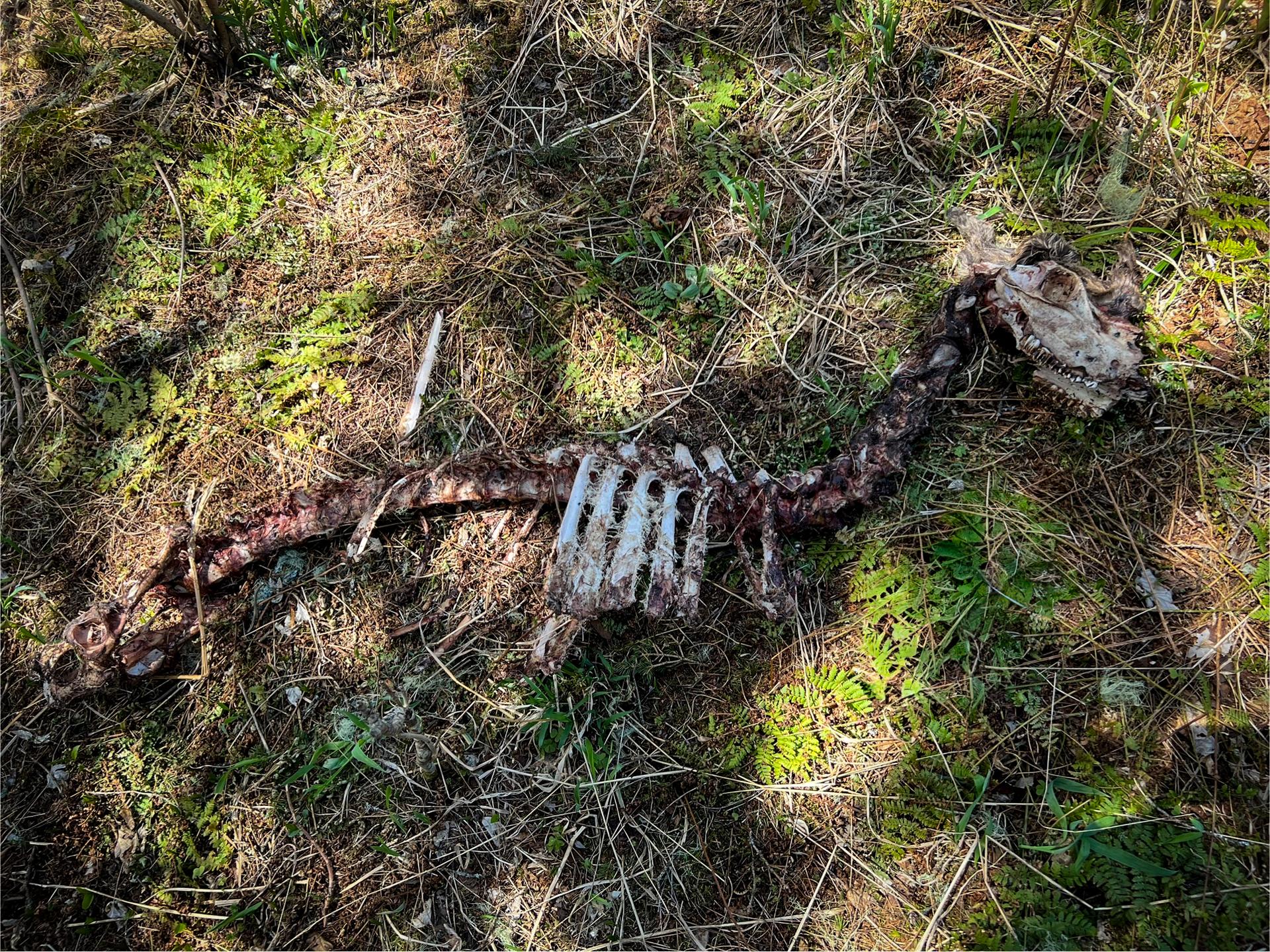 In 2024, 82 volunteers participated in Moosewatch expeditions, hiking approximately 1,131 km and discovering the carcasses or skeletal remains of 115 moose, three beavers, a wolf, a fox, a pine marten, and a white-tailed deer. For each moose carcass found, information cards were completed, specific bones were collected and brought back to the scientists, and then shipped to Michigan Technological University (MTU) for further study. |