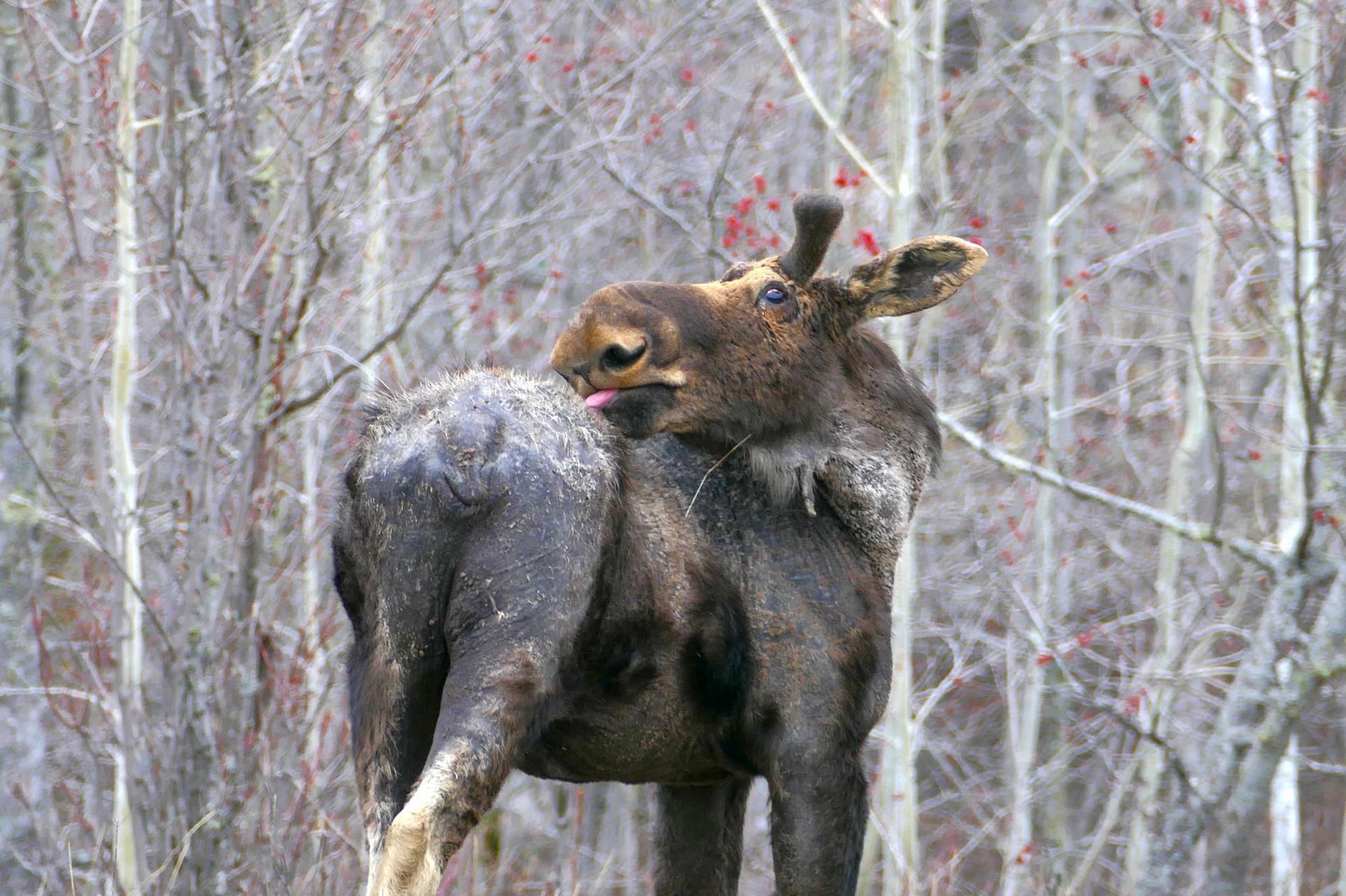 Bull Moose Removing Ticks, , April 2024 Photo Credit: Wolf-Moose Project |