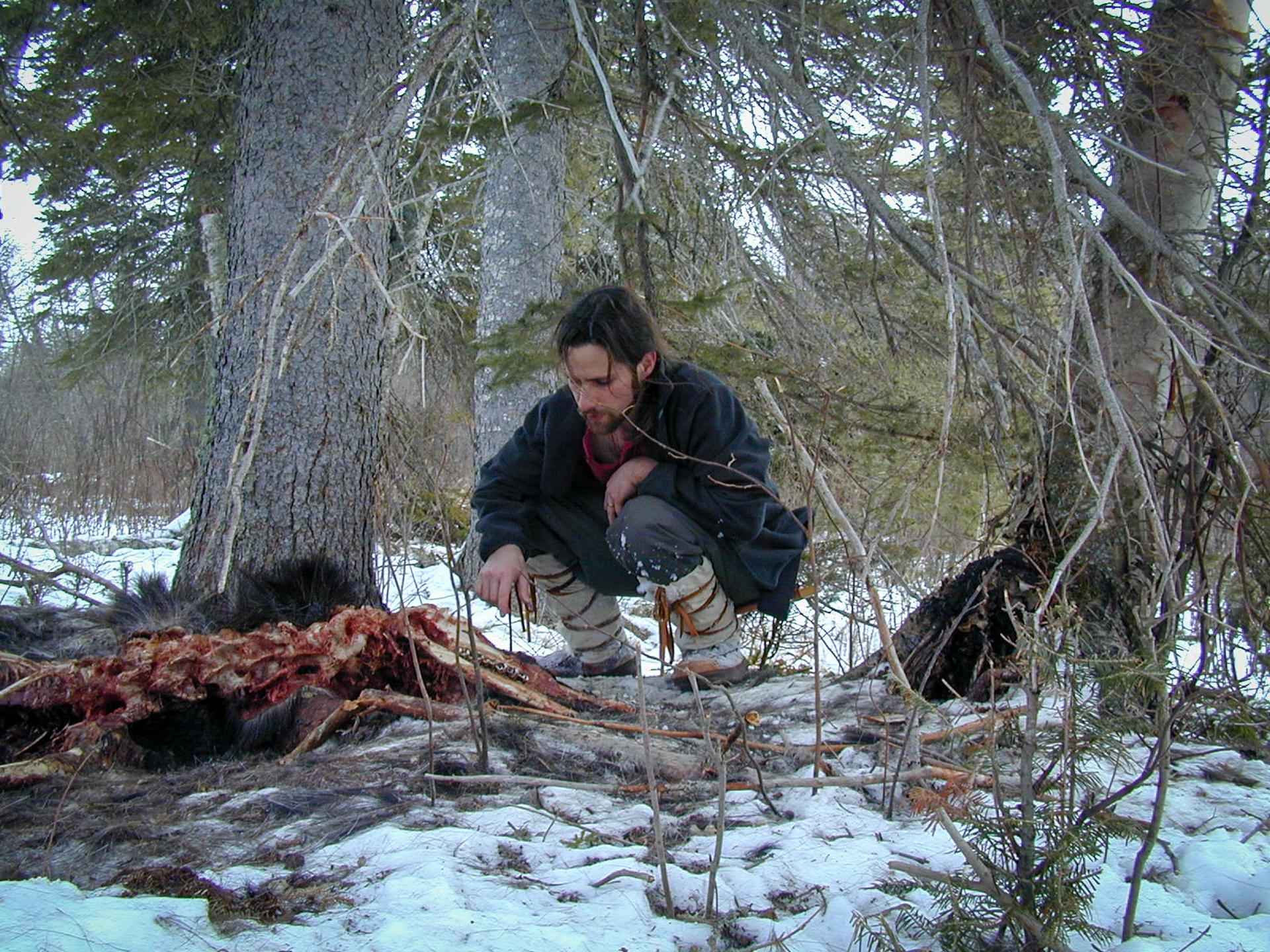 John Vucetich at a Moose Carcass Photo Credit: Wolf-Moose Project |
